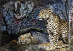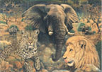 left to right: * Leopard and Rock Elephant * Leopard with Buck * Lion