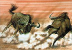 left to right: * Elephant Charge * Fighting Wildebeest * Fighting Zebras